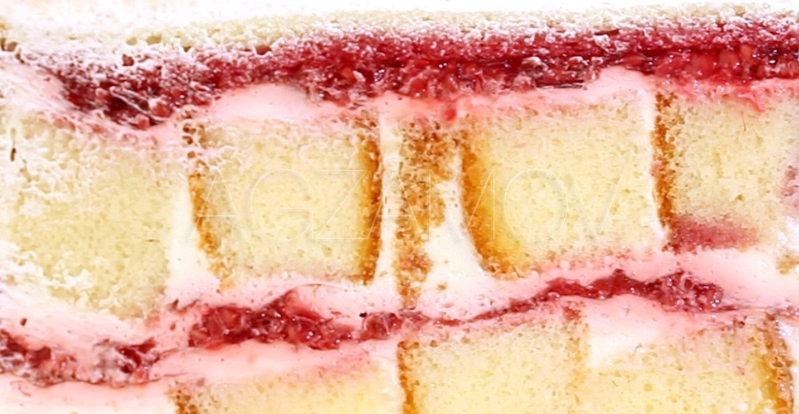 Raspberry Chiffon is biscuit cake, steamed on the basis of whipped yolks and French Patisserie cream with the addition of vanilla ice cream and fresh raspberries with sugar.