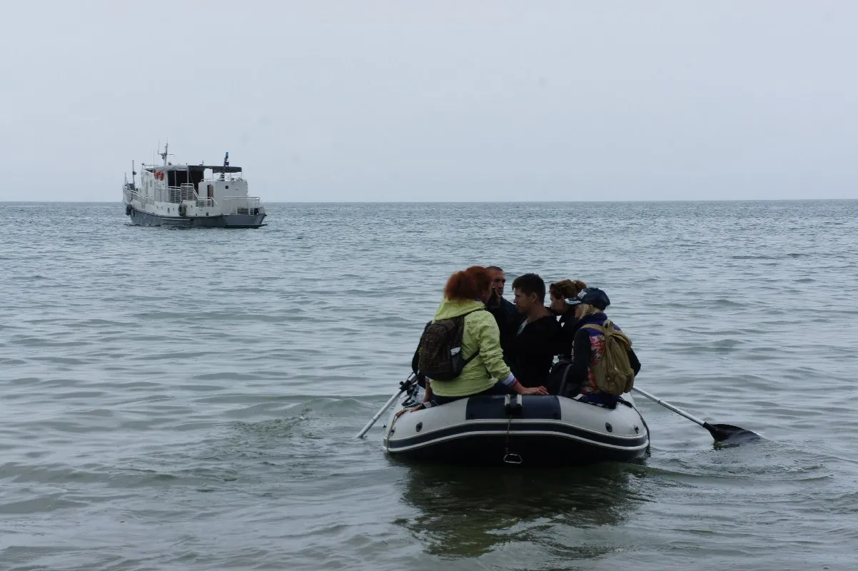 Three hours later the weather did not improve, the ship couldn't leave the bay. We contacted the captain and found out the coordinates of the place where they hid from the storm. We arrived at the place and began to assess the possibility to land guests on the shore.