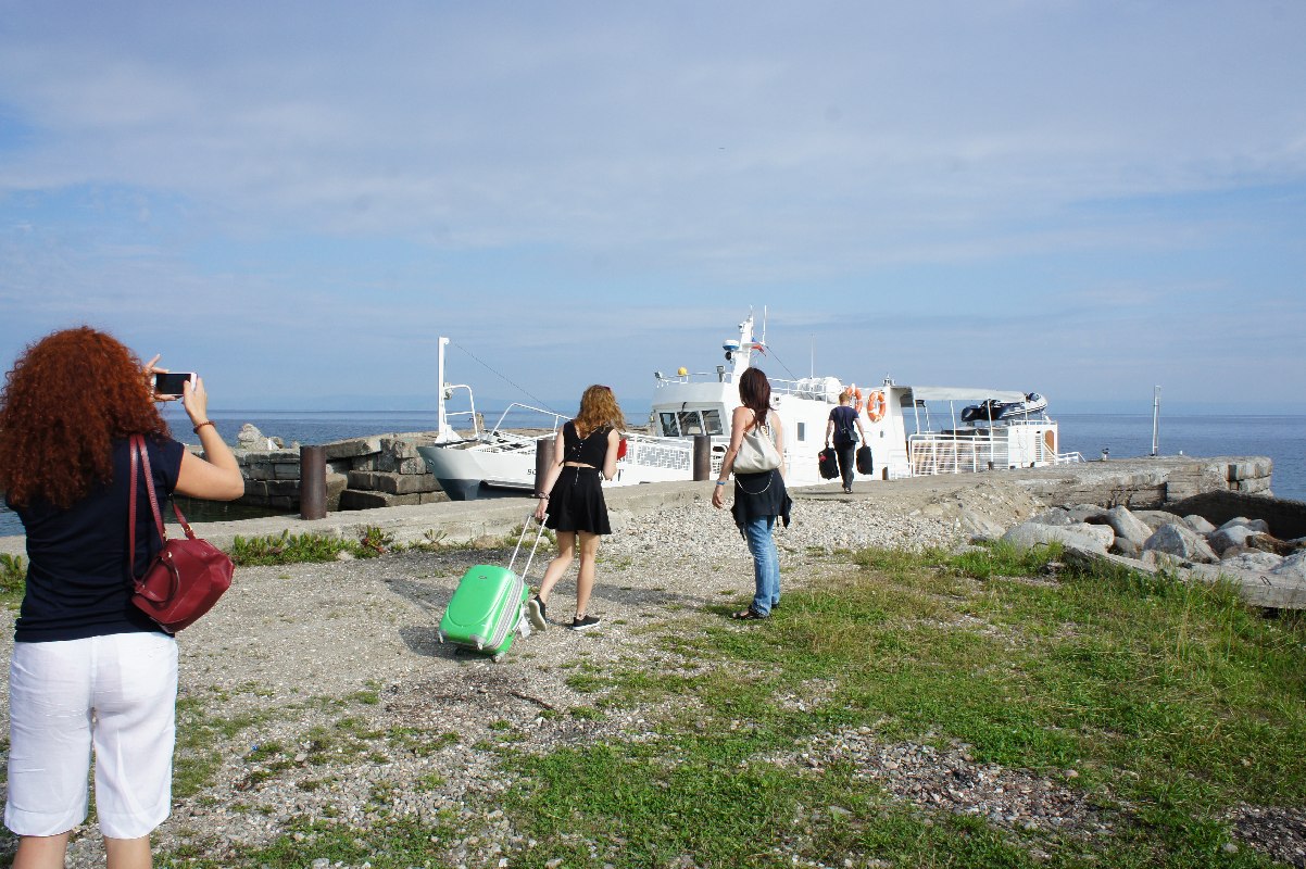 Watching through the binoculars, as the ship throws on the waves, it was obvious that it would not be possible to deliver people on the boat — it could turn over. With the crew of the ship, we decided to leave the ship for an overnight stay in the bay. The guests are alive and well, having dinner on the deck.