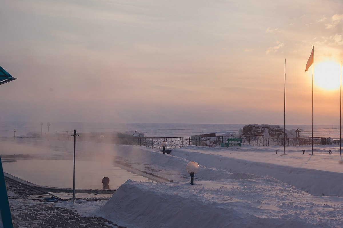 Kotelnikovsky Thermal Springs are the only known hot water outlet on the western shore of Lake Baikal. A modern hotel has been built here and there are swimming pools with thermal water in the open air. Because of the inaccessibility there are almost no people. Once upon a time this place was a trading post of the Irkutsk merchant Kotelnikov, the famous gold miner.