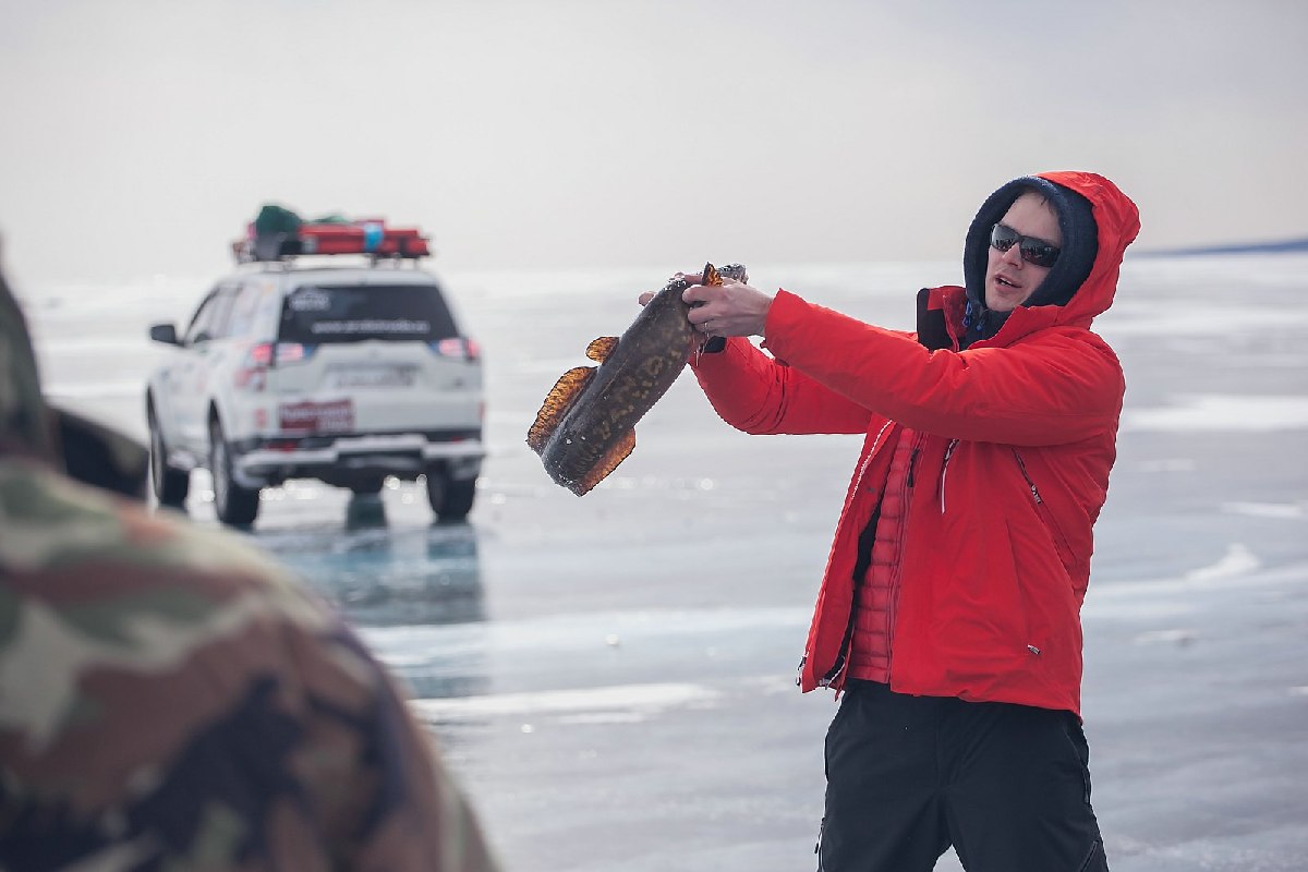 By lunchtime the column reached the cordon of the Baikal-Lensky Reserve. The hunters showed us how to catch fish in these places. A special device called “Morda”, for 10 minutes they caught 40 kg of burbot. The catch gave to us.