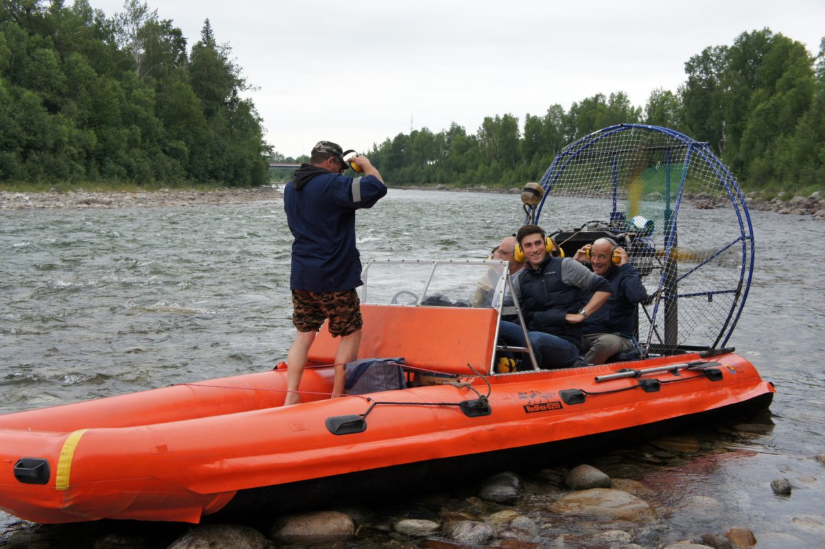 We took two cars Toyota Land Cruiser for driving on the roads. If on the territory of the Irkutsk region and Buryatia there are good asphalted roads, then in Mongolia there are only pits and sand. We can not get to the Mountain Mamai by jeeps — there are steep climbs, many stones, deep track and fords. We prepared two SUVs Nissan Safari with reinforced suspension, mud tires and snorkels. To cross the Baikal quickly we used the high-speed yacht Prestige 46 and we used an airboat to climb on the river to Sable Lakes.