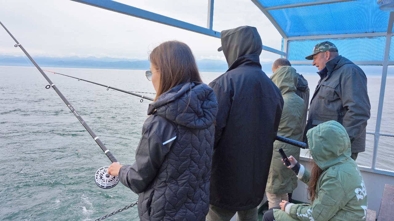 Чтобы задать праздничный тон с самого утра, мы доставили для именинницы коробку свежих пионов. Погода в этот день была тихая и не жаркая. Гости вышли на пристань после завтрака и погрузились на корабль. Капитан отчалил и пошел вдоль Кругобайкальской дороги. Периодически он делал остановки, а мы подманивали рыбу мелкой вермишелью и забрасывали крючки в воду.