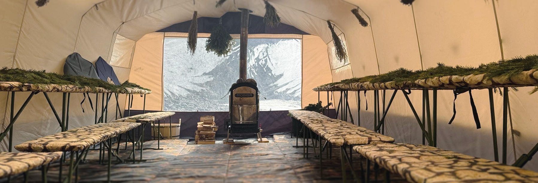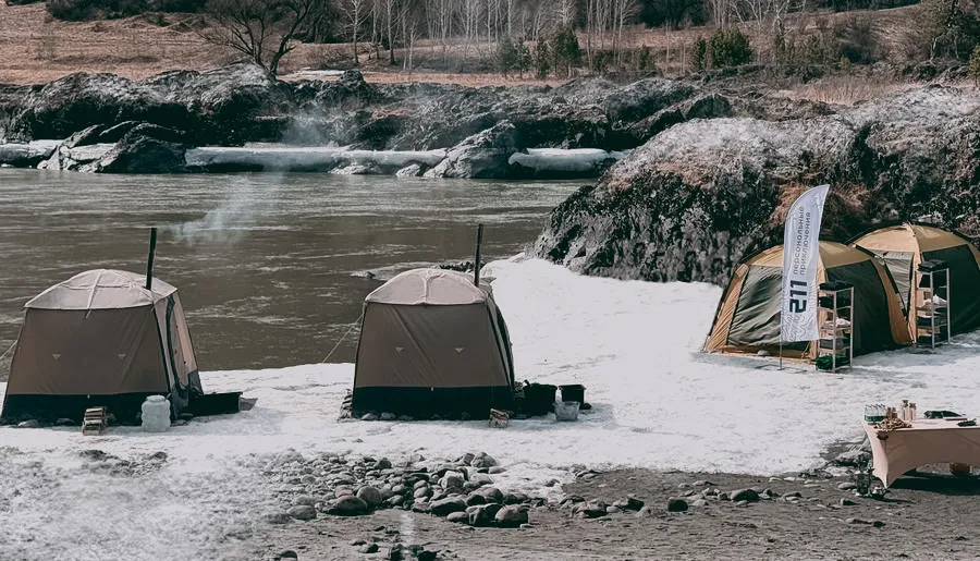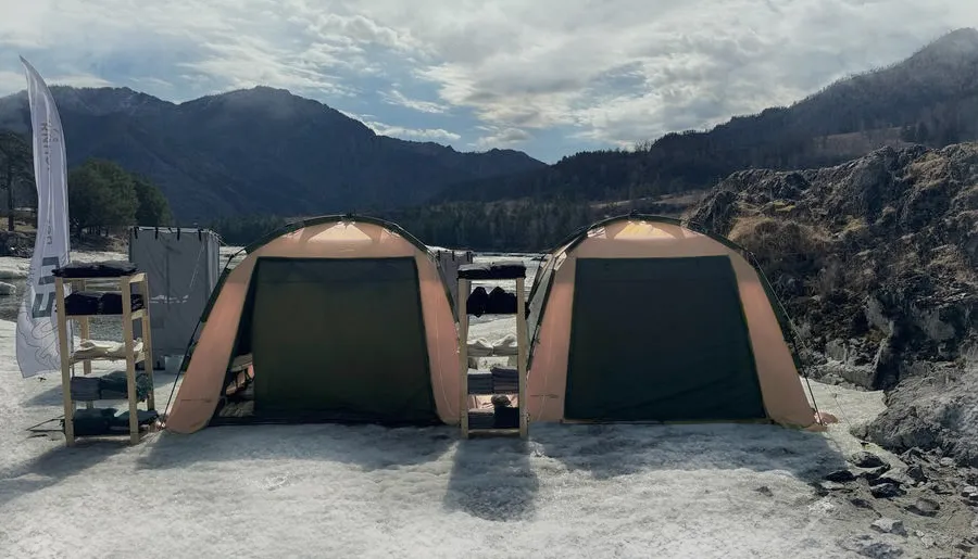 Той самой, в которой он жил три недели в одиночку на Северном полюсе в ожидании ледокола при температуре –50 °C — на краю земли, где до цивилизации были сотни километров льда. Производитель, новосибирская компания «Мобиба», сделал для нас точную копию той легендарной палатки с печью. Мы используем проверенную в экстремальных условиях конструкцию, чтобы гарантировать надежность нашего спа-комплекса в любой точке Алтая или Байкала.