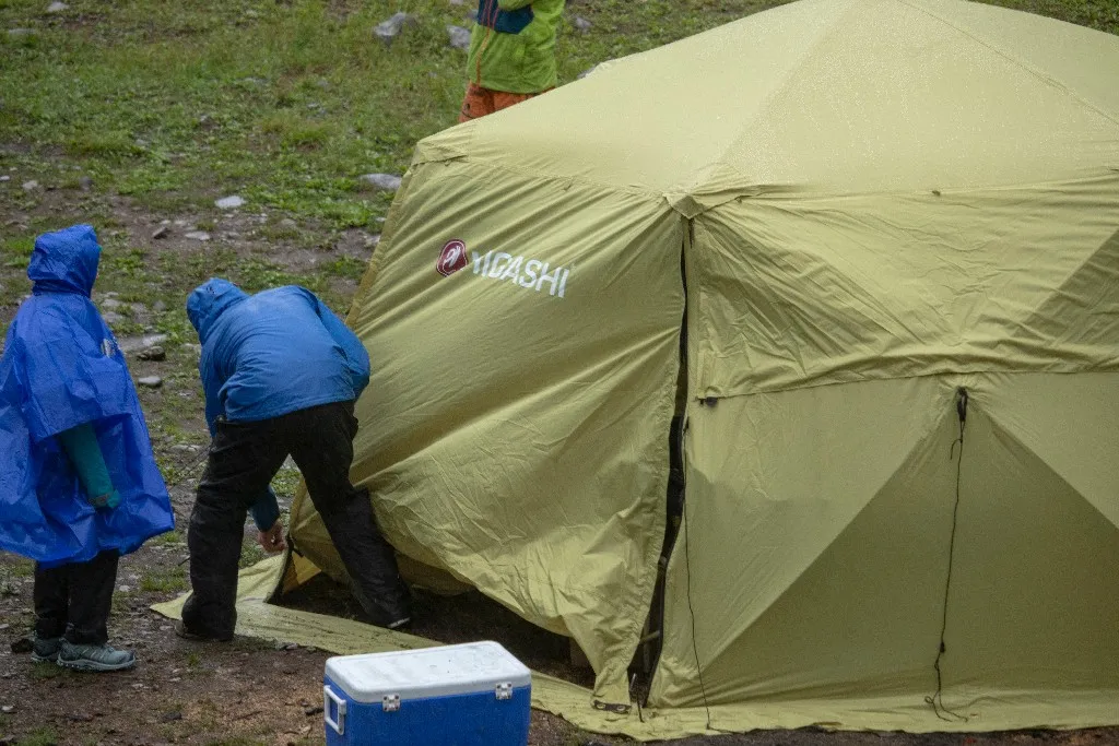 Пока гости обедали, пилоты поддерживали связь по спутниковому телефону с вертодромом. В 15:00 нам сообщили: «Вылет в «Долину» не подтверждаем, возвращайтесь.» Никто особо не расстроился. Полетим туда, как только появится возможность — у нас еще впереди четыре дня.
