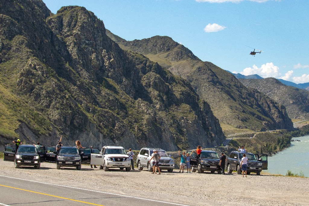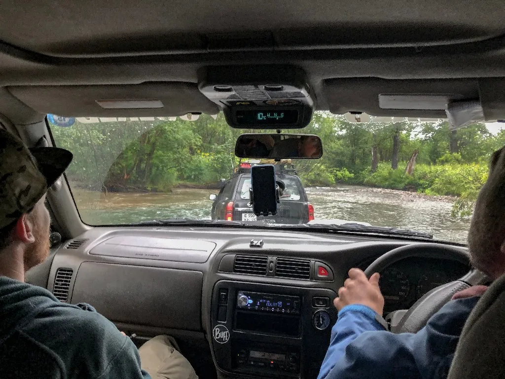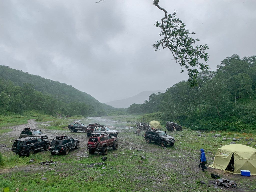 Природу и экшн, может заменить только природа и экшн. Поэтому к девяти утра мы собрали все подготовленные внедорожники, которые смогли найти. На семи машинах, с равномерно распределенными по ним гостями, выдвинулись к Карымшинским горячим источникам. Ливень, грязь, броды, разбитая колея — когда условия для отдыха хуже некуда, нужно назвать это «экспедиция» или «сафари». Посмотрите, наши программы приключений, мы всегда так маскируем полный трэш.