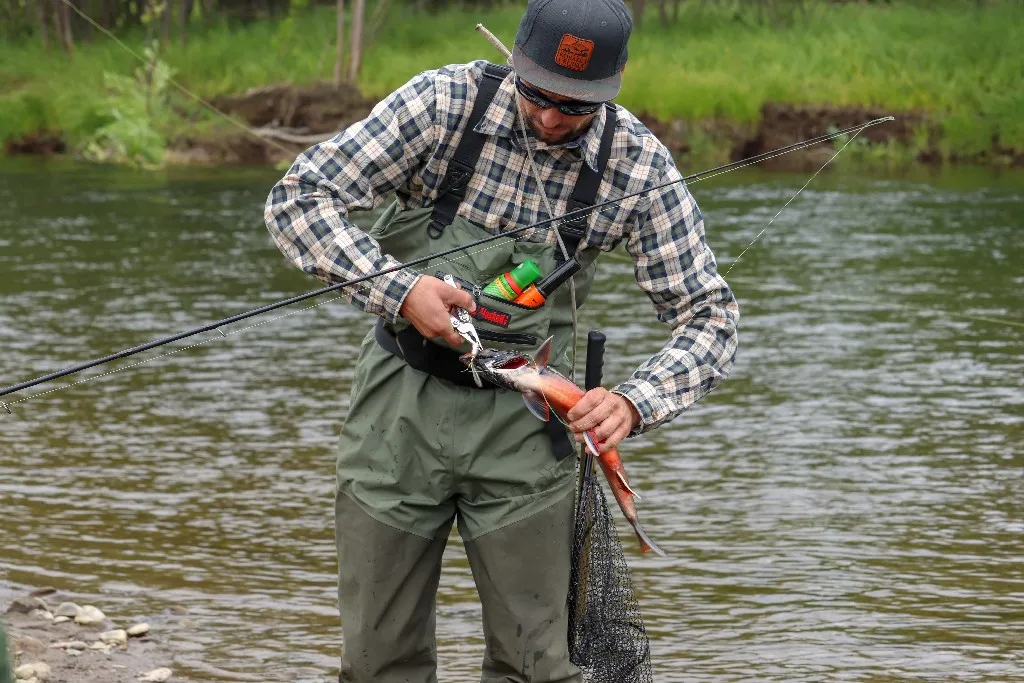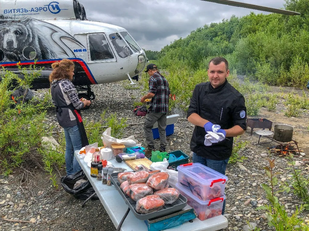 Рыбалка на Камчатке может впечатлить даже искушенных людей — в какой-то момент начинает казаться, что для здесь даже удочка не нужна, можно ловить руками. За час наловили около 50 килограммов рыбы. Взяли хвостов десять, остальное отпустили. Когда вернулись, в базовом лагере уже была готова уха, лосось на гриле, а девушки восторженно обсуждали медведя, который приходил к ним поздороваться.