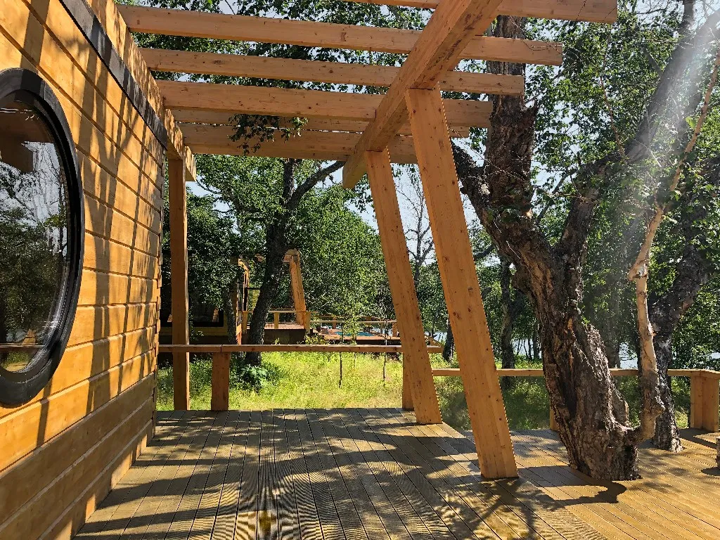 Помимо подтверждения поездки, помощник отправил еще и точные даты — с 11 по 15 августа. Трудность заключалась в том, что с 11 по 15 «Северные приключения» уже были заняты, и даты двигать мы не могли. Из альтернатив был только комплекс «Лагуна», на территории которого есть два приличных коттеджа и много небольших, отдельно стоящих номеров попроще.