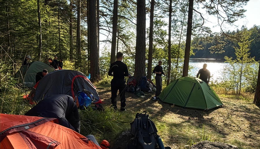 Мы с командой сразу подумали про Карелию. Она плюс–минус отвечала всем параметрам, кроме треккингового маршрута на два дня для такого количества человек. Прежде чем предложить это направление мы сделали две разведки: первая по Ладоге, вторая в район Заонежья. Где-то короткий маршрут, где-то — не разбить лагерь на 20 палаток, где-то — небезопасно с точки зрения ландшафта. Лучшим решением неожиданно оказался остров Валаам, который раньше мы рассматривалм только как экскурсионных объект с религиозной направленностью.