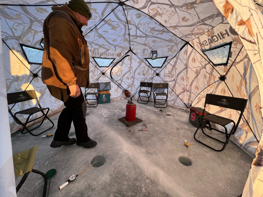 Спустившись на уровень ниже, мы попытались найти тех, кто мог сдать в аренду снаряжение. Для группы 10 человек нужно было минимум две палатки: одна для рыбалки, вторая для столовой. Они должны отапливаться и быть укомплектованы минимальным набором кемпингового снаряжения: столы, стулья, посуда, газовые горелки, автономное освещение, рыболовные снасти. Также нужна команда для обслуживания кэмпа: повар, инструктор по рыбалке, мастер на все руки и резервный человек на случай нештатных ситуаций.
