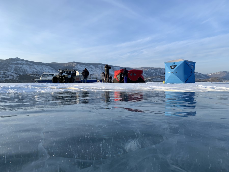 У гостей в путешествии было все, что может дать зимний Байкал: снегоходы, вертолеты, собачьи упряжки, трэколы, хивусы, коньки, шаманы, море снега и льда, бани — добавить реально было нечего. Но больше всего им запомнился кэмп из двух палаток, где они провели четыре часа. Удивительная вещь!